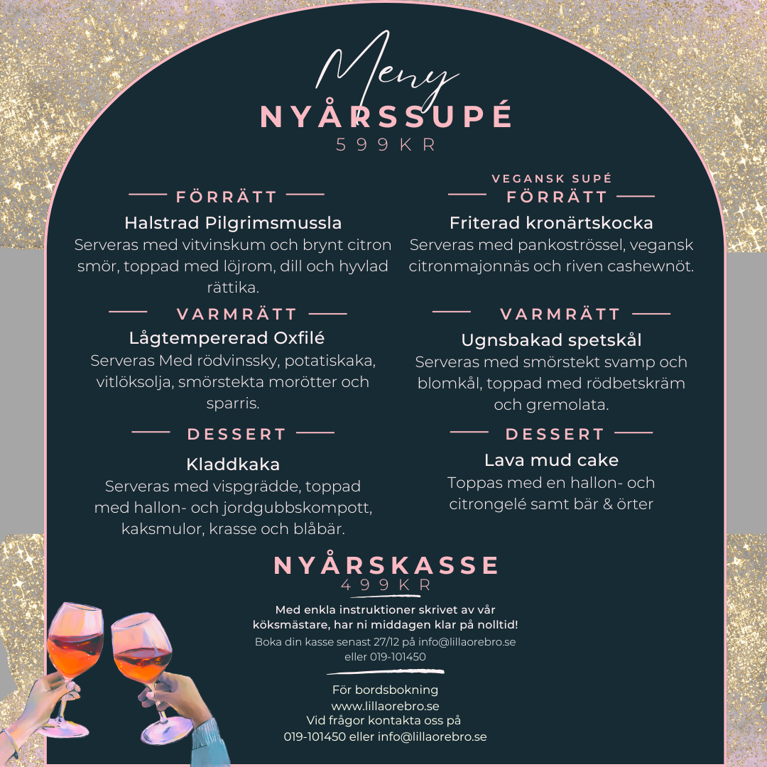 Vid bokning på nyår vänligen fyll i Vegansk supé eller Kött supé